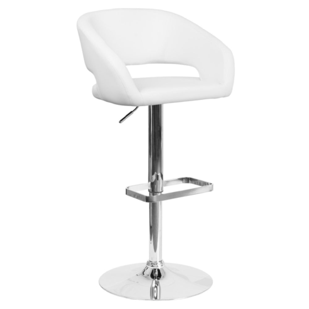 Compared to other seating options, the Flash Furniture CH-122070-WH-GG combines a contemporary aesthetic with robust construction and precise height adjustment, delivering reliable performance in foodservice environments. Its vinyl upholstery and chrome base provide longevity and easy cleaning, supporting operational efficiency and guest comfort without sacrificing style. This model's simple assembly process and stable design make it a practical choice for commercial applications.