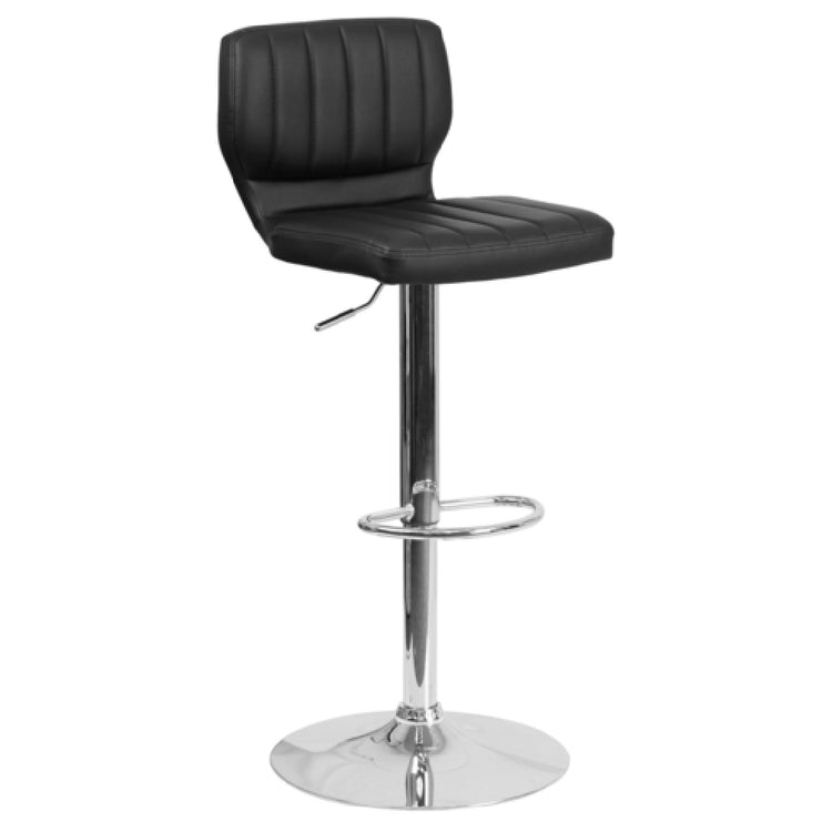 The Flash Furniture CH-132330-BK-GG Swivel Barstool is a professional-grade, contemporary-style indoor seating solution designed for commercial foodservice environments. This adjustable-height barstool features a low back upholstered with vertical-line vinyl, ensuring comfort and support during extended periods of use. Equipped with a gas lift mechanism, it transitions smoothly from counter to bar height, accommodating varied customer or staff needs. Its sturdy chrome 17-5/8" diameter base provides stability, while the proposition 65-compliant fire retardant foam ensures safety. This model is optimized for restaurant, bar, or lounge settings requiring durable, stylish, and user-friendly seating with reliable adjustability and ergonomic design.