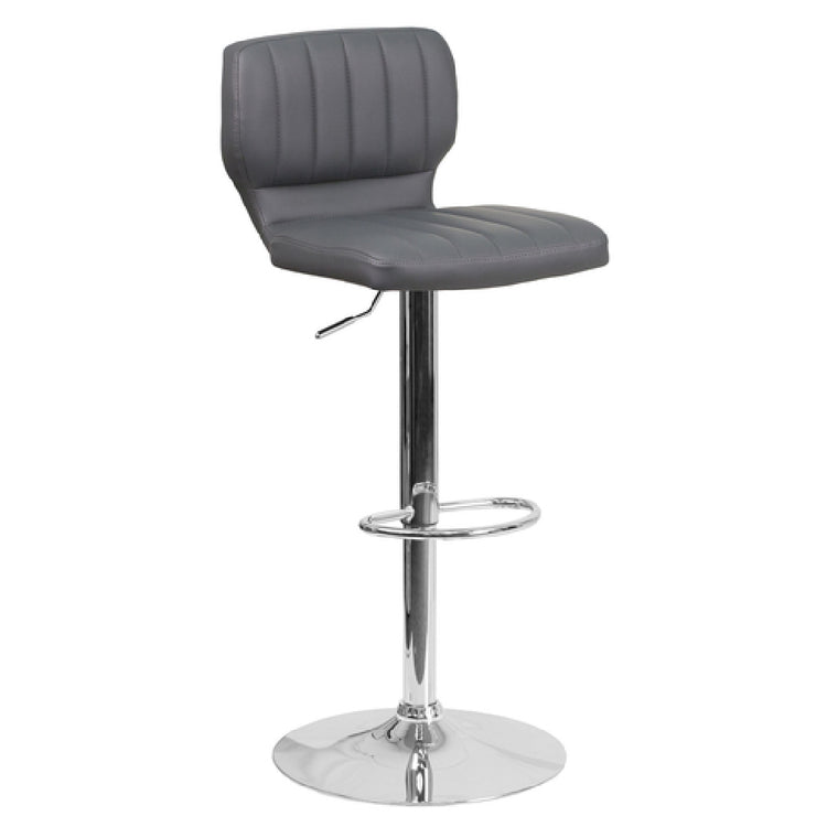 The Flash Furniture CH-132330-GY-GG Swivel Barstool is a commercial-grade indoor seating solution designed for versatile use in hospitality, restaurant, and bar environments. Crafted with a contemporary style, this adjustable-height barstool features a low back with upholstered vertical-lined vinyl, offering ergonomic support for extended periods. Equipped with a gas lift for seamless height adjustment from counter to bar height, it integrates a 17-5/8" diameter chrome pedestal base for stability. Its durable construction and fire-retardant foam ensure compliance with safety standards, while its upholstered design provides optimal comfort. This model is specifically engineered for high-traffic establishments seeking reliable, stylish seating with precise adjustability and easy maintenance capabilities. It combines technical precision with aesthetic appeal suited for modern commercial spaces.