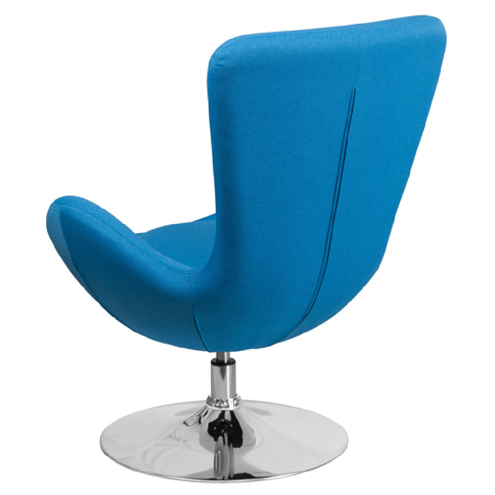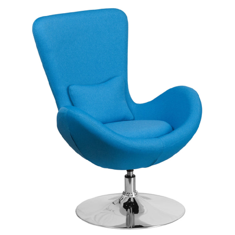 The Flash Furniture CH-162430-AQ-FAB-GG Egg Series Swivel Reception/Lounge/Side Chair is a versatile commercial seating solution designed for reception areas, lounge spaces, and side chair applications within professional environments. Crafted by Flash Furniture, this chair features an upholstered seat and back with fabric upholstery, integrated curved arms, and a 13" x 10" lumbar pillow for enhanced ergonomic support. The chair rests on a 21.5-inch diameter chrome pedestal base, providing stability and ease of rotation, making it suitable for high-traffic waiting areas or collaborative lounge settings. Its fire-retardant foam and upholstery meeting CA117 standards ensure safety and durability for frequent commercial use. Precise specifications include a height of 38 inches, width and depth of 30 inches each, and a weight of 46 lbs, making it a particularly adaptable component of professional seating arrangements in hospitality, corporate lounges, or medical office environments.