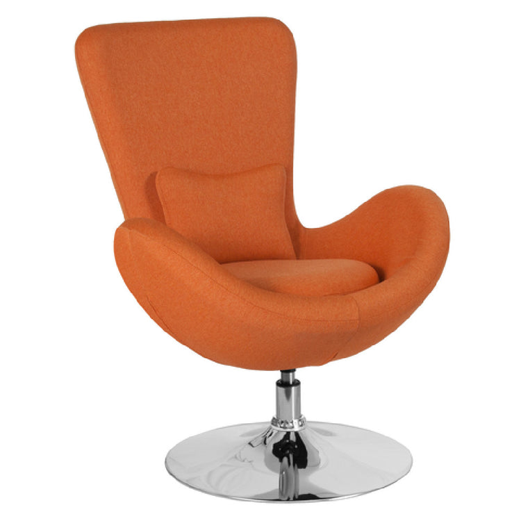 A commercial swivel chair is a professionally designed seating unit with a rotating base intended for high-traffic hospitality and reception environments. The Flash Furniture CH-162430-OR-FAB-GG Egg Series Swivel Reception/Lounge/Side Chair features a 21-1/2" chrome pedestal base, upholstered back with integrated arms, and fabric seat cushion, ideal for accommodating visitors or clients. Its ergonomic design, fire-rated foam, and durable construction make it suitable for waiting areas, lounges, and hospitality spaces, supporting moderate throughput and ensuring reliable performance in business settings.