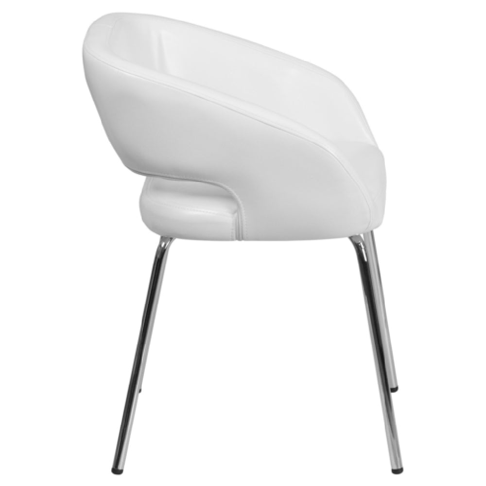 The Flash Furniture CH-162731-WH-GG Fusion Series Side/Reception/Lounge Chair is a commercial-grade indoor seating solution crafted for professional environments such as reception areas, lounge spaces, and waiting rooms. Featuring a curved frame design, this armchair offers ergonomic comfort with a sleek aesthetic. Upholstered with LeatherSoft material, it provides durability and easy maintenance, enhanced by CA117 fire retardant foam for safety compliance. The chair's chrome legs with plastic floor glides ensure stability and protect flooring surfaces. At a height of 28.75 inches, with a width of 23.5 inches and depth of 21.75 inches, this model balances space efficiency with substantial seating capacity, making it suitable for high-traffic commercial settings requiring reliable, stylish, and comfortable lounge furniture.