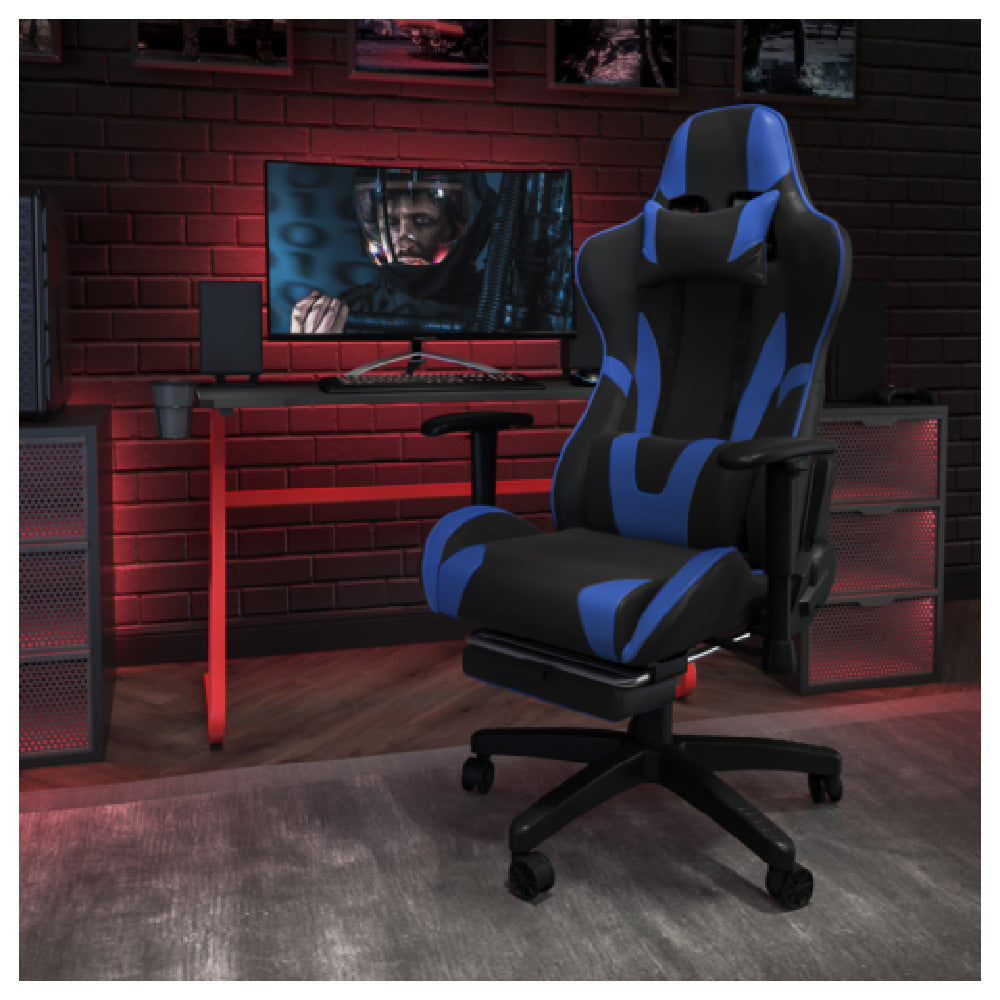 A commercial gaming chair is a specialized seating solution designed for intensive use in professional gaming, streaming, and esports environments. Crafted with durable, high-quality materials such as LeatherSoft upholstery and reinforced bases, these chairs provide ergonomic support, adjustability, and durability to withstand prolonged, repeated sessions. The Flash Furniture CH-187230-BL-GG X30 Gaming Chair is installed in high-demand environments like gaming centers and professional studios, supporting sustained comfort during extended gameplay or work periods, making it well-suited for high-volume, high-performance settings.