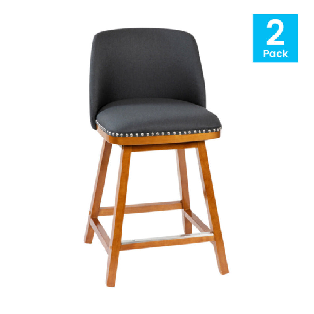 The Flash Furniture CH-192162X000-24-CHAR-GG counter stool features a sturdy walnut-finished wooden leg base designed for commercial durability, supporting up to 300 pounds. Its dimensions include an 18.5-inch width, 18.5-inch depth, and a height of 34.75 inches, making it suitable for standard bar-height surfaces. Upholstered with faux linen, it offers an easy-to-clean surface compatible with typical hospitality cleaning routines. The foam padding ensures long-lasting comfort, while the footrest enhances ergonomic support. Assembly is required, with all necessary hardware included for straightforward setup. The stool's construction adheres to strict material safety standards, suitable for high-traffic commercial settings where reliability and ease of maintenance are priorities.