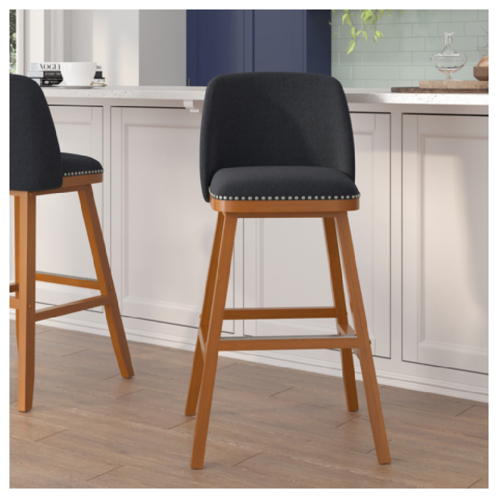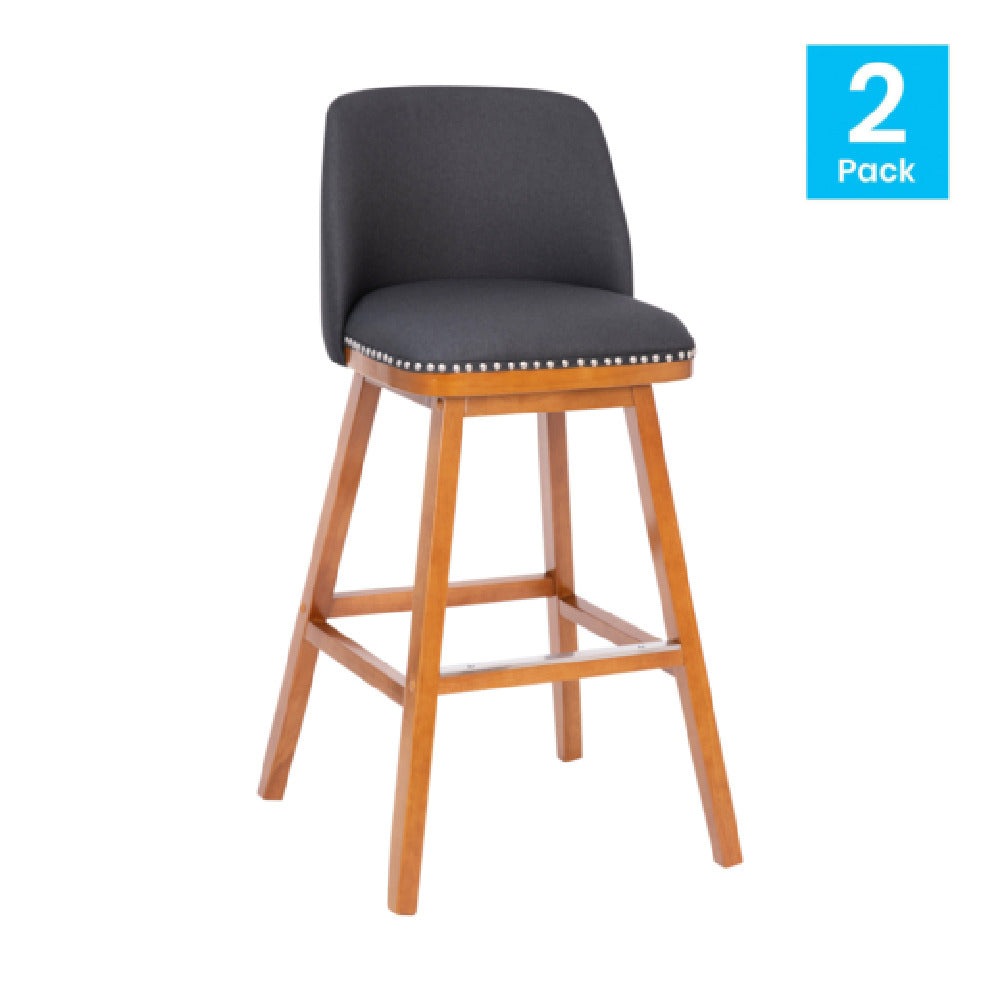 Flash Furniture, CH-192162X000-30-CHAR-GG, Julia Bar Stool, 300 lb. weight capacity, 30" seat height, mid-back armless design, faux linen upholstery, accent nail trim, foam padded back and seat, walnut finish wooden frame, built-in footrest, charcoal (set of 2) (assembly required)