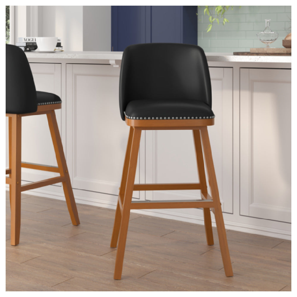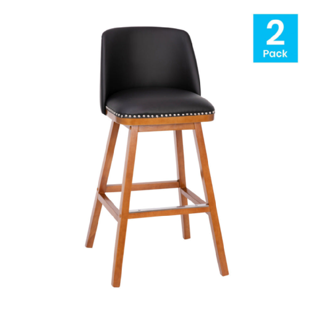 Flash Furniture CH-192162X000PU-30-BK-GG 20.5 Inch Width Indoor Bar Stool LeatherSoft Black Walnut Finish - 1/Set