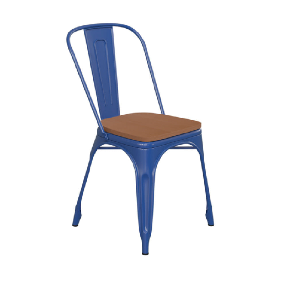 The Flash Furniture Perry Stacking Side Chair with model number CH-31230-BL-PL1T-GG is a commercial-grade outdoor seating solution designed for high-volume settings that demand durability and functional versatility. Crafted with a steel frame and galvanized steel cross brace, this stacking side chair supports up to 500 pounds, making it suitable for bustling foodservice environments such as cafeterias, cafes, and outdoor entertainment venues. Its teak poly resin wood seat combined with a curved slat back offers weather-resistant resilience and ease of maintenance, ensuring longevity in indoor and outdoor applications. This model features compact dimensions and stackability for efficient storage, aligning with workflows that prioritize space-saving seating arrangements in busy hospitality spaces.