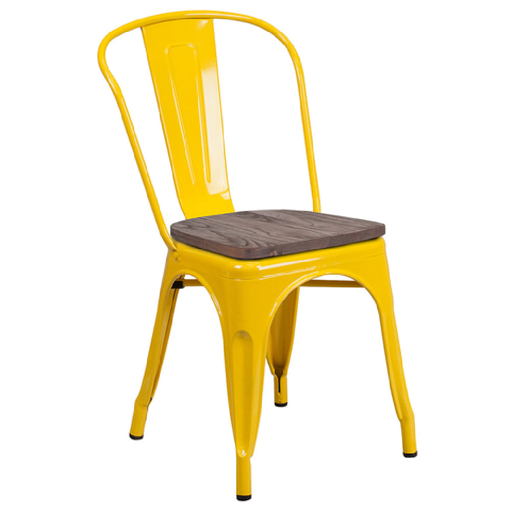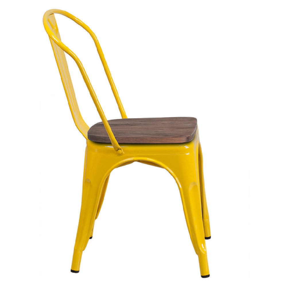 The Flash Furniture CH-31230-YL-WD-GG Stacking Side Chair is a commercial-grade seating solution designed for high-demand indoor environments. Crafted from galvanized steel with a textured wood seat, this chair supports up to 500 lbs., making it suitable for various foodservice settings such as cafeterias, casual dining areas, and event spaces. Its stackability—up to 8 units—facilitates efficient storage and quick setup, while the metal curved back with vertical slat provides ergonomic support. Finished with a durable powder coat, the chair ensures longevity and ease of maintenance in busy hospitality environments, making it a versatile choice for facilities requiring robust and space-efficient seating options.