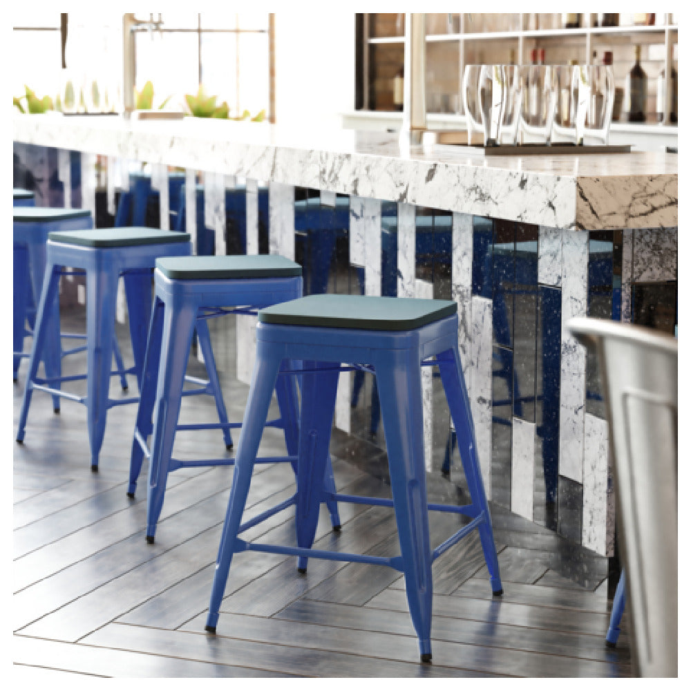 Ideal for high-volume hospitality and bar service environments requiring durable, space-efficient seating.
