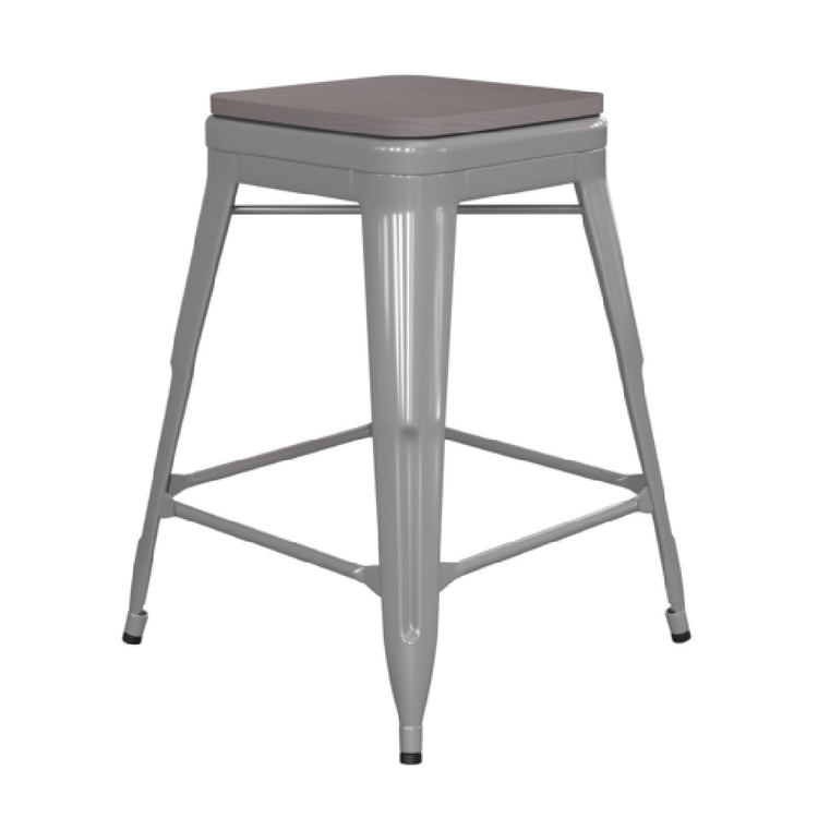 Flash Furniture CH-31320-24-SIL-PL2G-GG 16 Inch Counter Height Bar Stool Gray Poly Resin Galvanized Steel