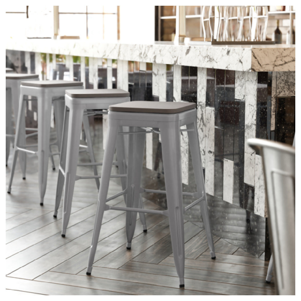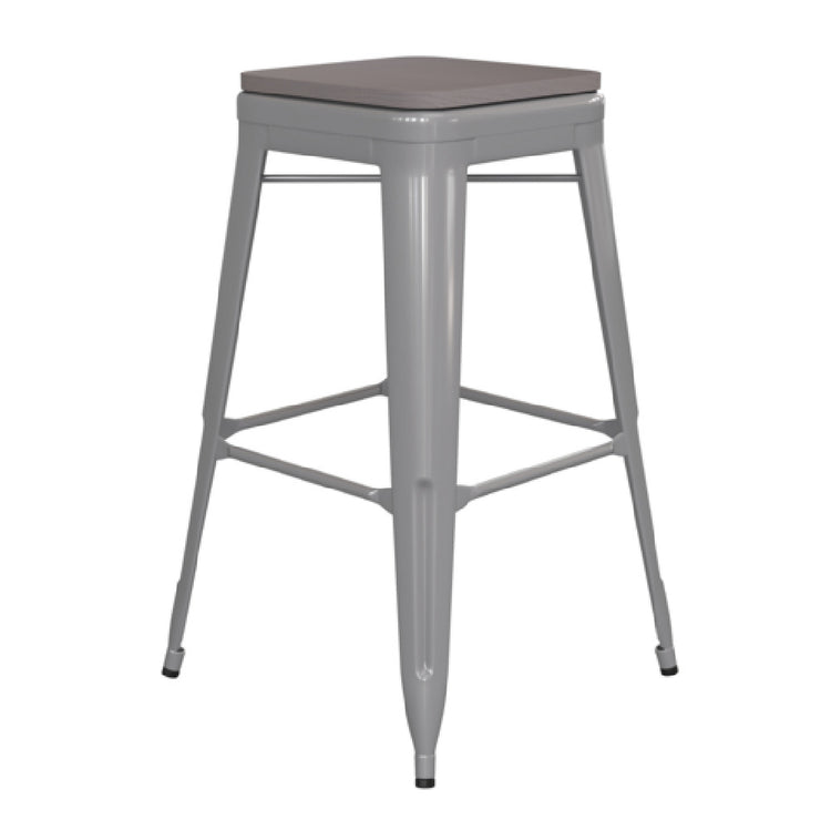 Flash Furniture CH-31320-30-SIL-PL2G-GG 17 Inch Indoor Stacking Bar Stool Gray Poly Resin Wood