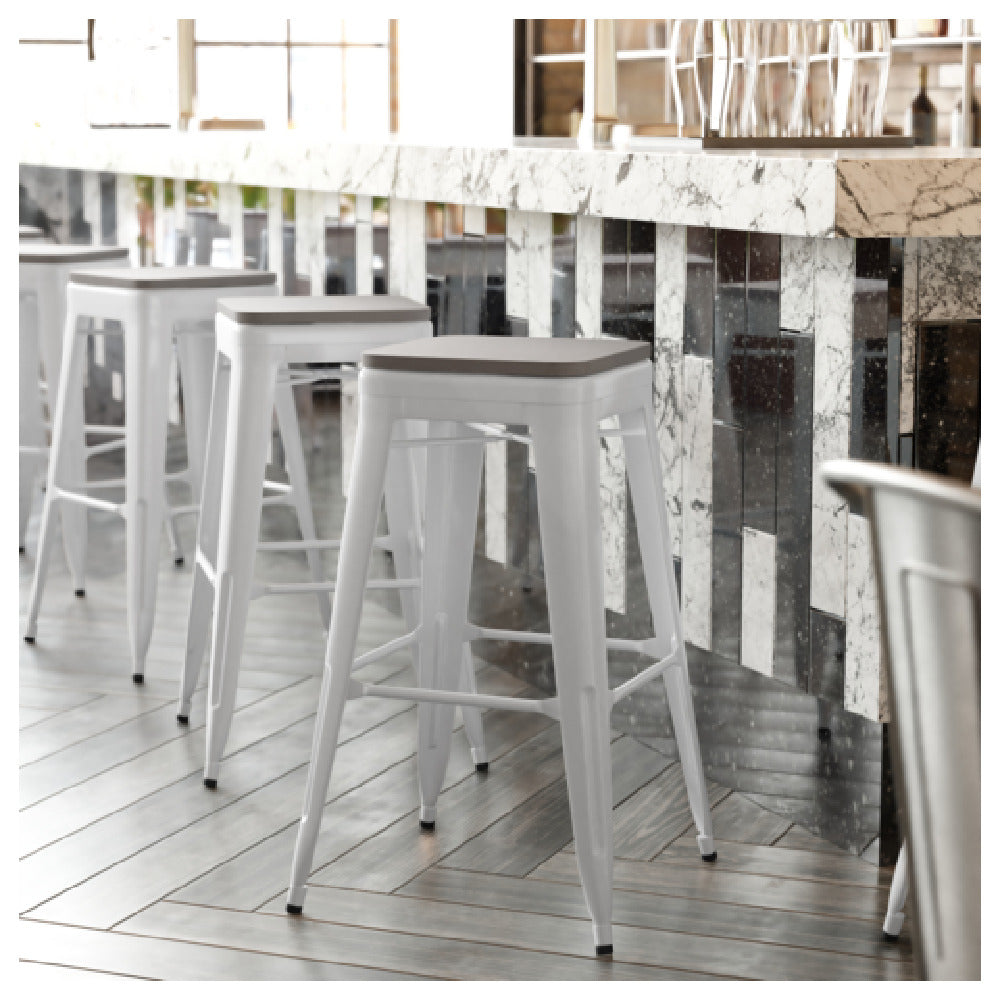 The Flash Furniture CH-31320-30-WH-PL2G-GG Kai Bar Stool stands out among commercial stacking stools with its substantial 500 lb. capacity, galvanized steel construction, and rust-resistant powder coat finish. Its lightweight yet sturdy design facilitates quick handling and storage, providing a restaurant-ready solution that balances durability with ease of use. This model’s design features optimize operational efficiency and longevity in demanding hospitality settings.