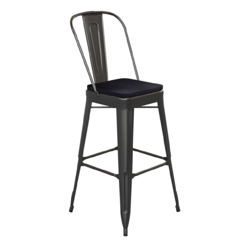 The Flash Furniture CH-31320-30GB-BK-PL2B-GG Kai Bar Stool is a heavy-duty, commercial-grade outdoor seating solution designed for high-capacity environments. Engineered with galvanized steel and finished with a durable powder coating, this bar stool features a curved metal back with vertical slats and a sturdy poly resin seat, supporting a weight capacity of 500 lbs. It incorporates a cross brace beneath the seat for enhanced stability and longevity, making it ideal for restaurant terraces, outdoor bars, and hospitality patios requiring resilient, weather-resistant furniture. Its technical specifications include a 45.25-inch height with a 17.75-inch width and 20-inch depth, engineered for reliable indoor/outdoor performance and ease of maintenance.
