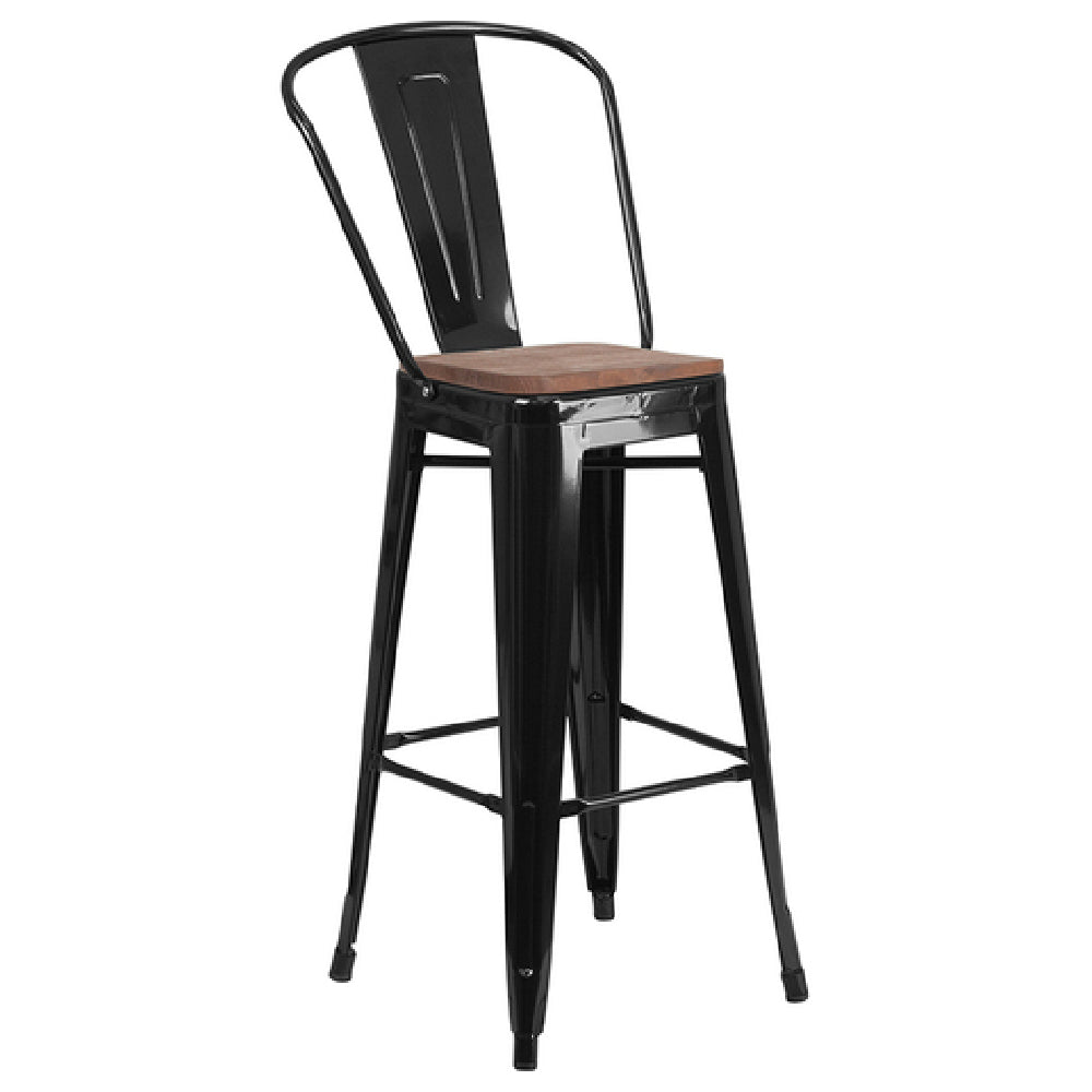The Flash Furniture CH-31320-30GB-BK-WD-GG bar stool is a durable, high-capacity seating option designed for commercial indoor environments. As a staple in hospitality and foodservice settings, this bistro style stool boasts a sturdy metal curved back with vertical slats and a textured wood seat, supporting up to 500 pounds of weight. Its lightweight construction and protective powder coat finish make it ideal for high-traffic areas requiring reliable, easy-to-maintain seating. Engineered for professional use, this model blends functional design with reinforced construction standards, making it suitable for diverse restaurant, bar, and café applications demanding robust and stylish furnishings.