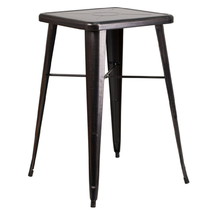 Flash Furniture, CH-31330-BQ-GG, Table, 23-3/4"W x 23-3/4"D x 40"H (footprint: 27-3/4"W x 27-3/4"D), bar height, square, 2" thick edge, galvanized steel, powder coat finish, cross brace, rubber floor glides, designed for indoor/outdoor commercial and residential use, black and antique gold (assembly required) (in stock items usually ship within 24 hours)