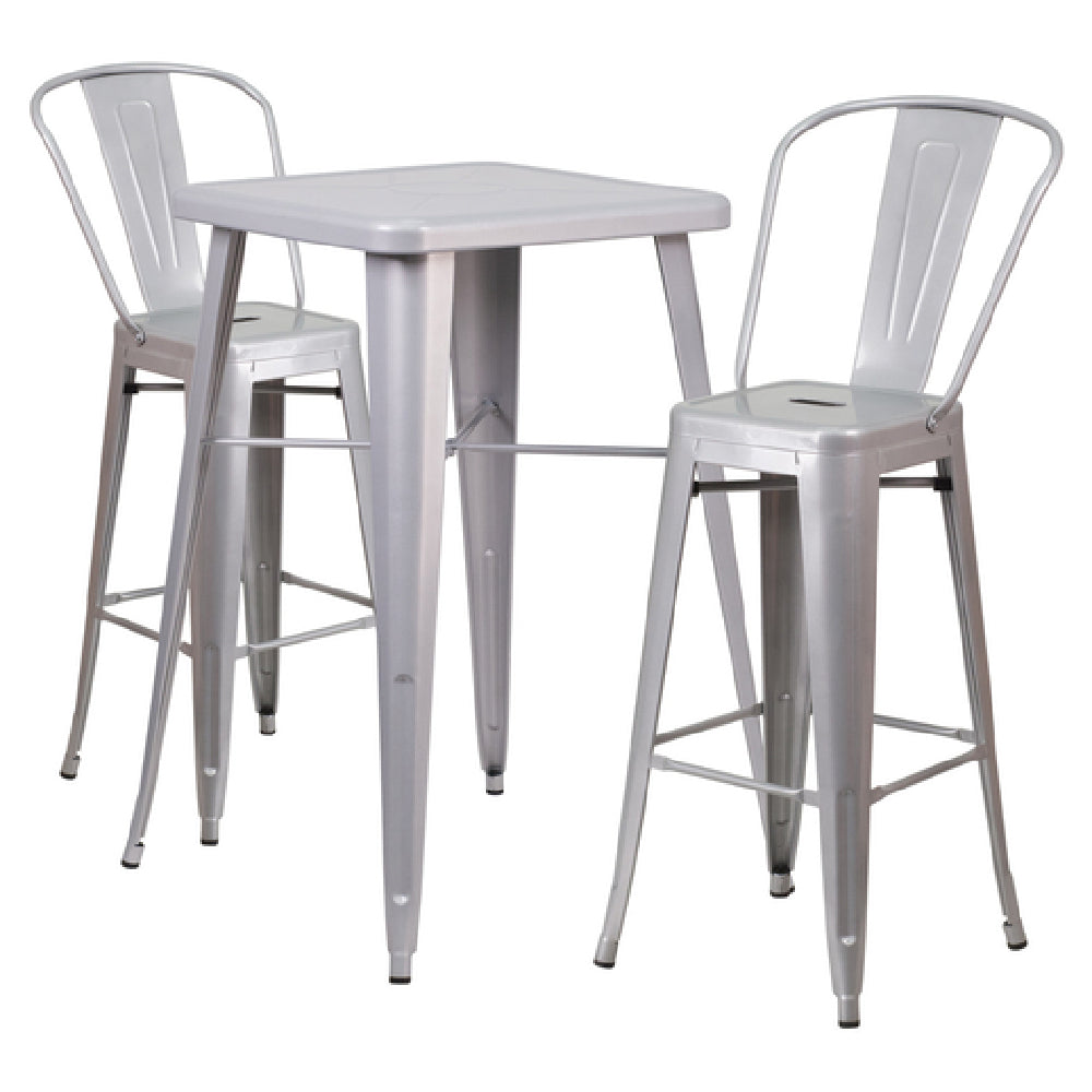 Flash Furniture CH-31330B-2-30GB-SIL-GG 27-3/4 Inch Square Table and Bar Stool Set - 1/Set