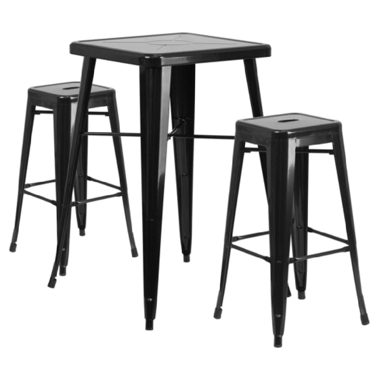 Designed for moderate outdoor workloads, the Flash Furniture CH-31330B-2-30SQ-BK-GG set features premium galvanized steel construction, weather-resistant finishes, and practical height for hospitality outdoor areas. This set is suitable for outdoor cafes, bar patios, and casual dining venues supporting high-traffic service. Its robust design ensures long-lasting performance and easy maintenance in busy foodservice environments.