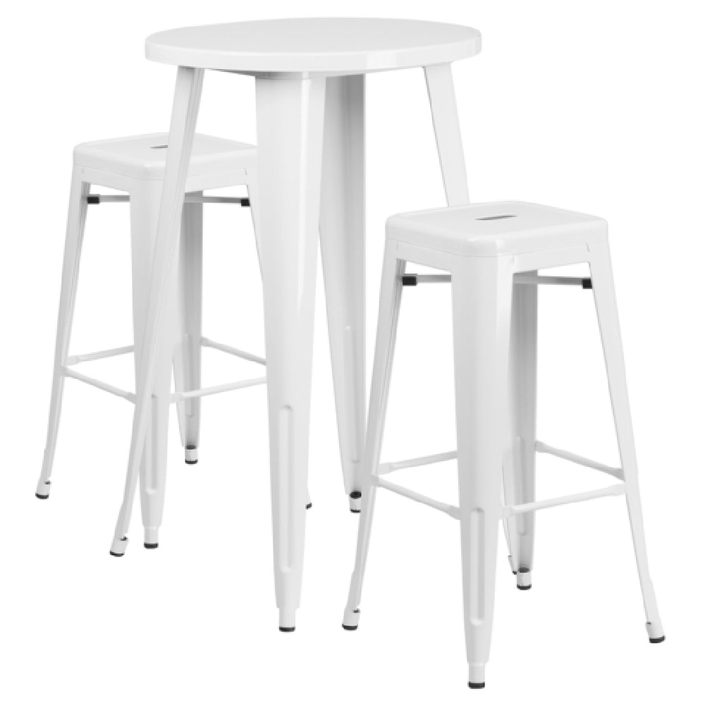 Flash Furniture CH-51080BH-2-30SQST-WH-GG 24 Inch Round Bar Table Set with 2 Stools White Powder Coat - 1/Set