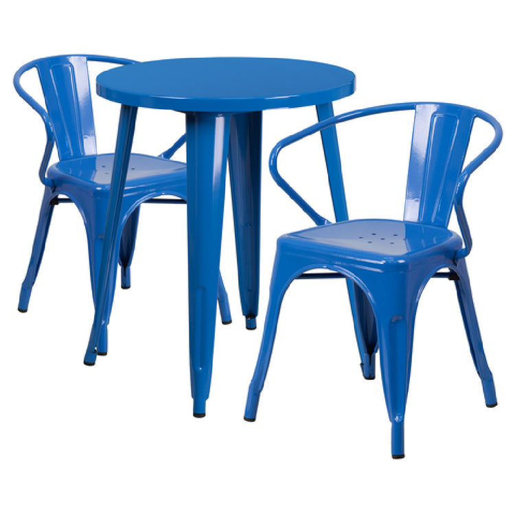 Flash Furniture CH-51080TH-2-18ARM-BL-GG 24 Inch Diameter Table and Chair Set Blue Metal - 1/Set