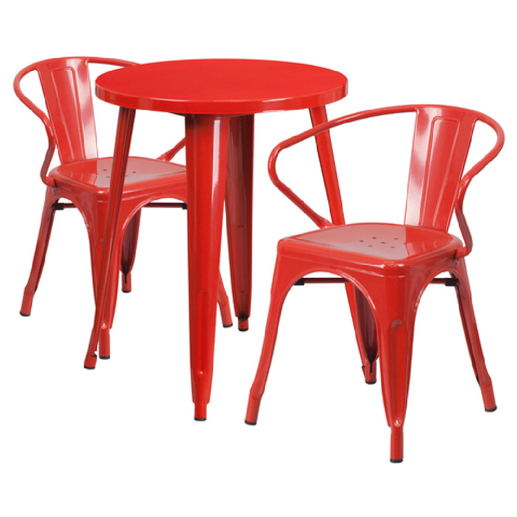 Flash Furniture CH-51080TH-2-18ARM-RED-GG 24 Inch Round Table and Chair Set Red Powder Coated Metal - 1/Set