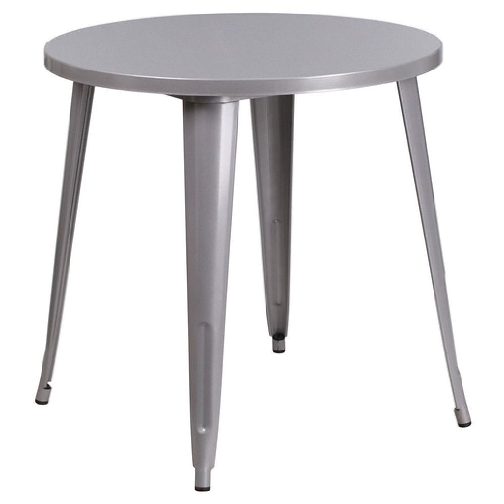 Flash Furniture CH-51090-29-SIL-GG 30 Inch Round Table Indoor Dining Metal Silver Finish