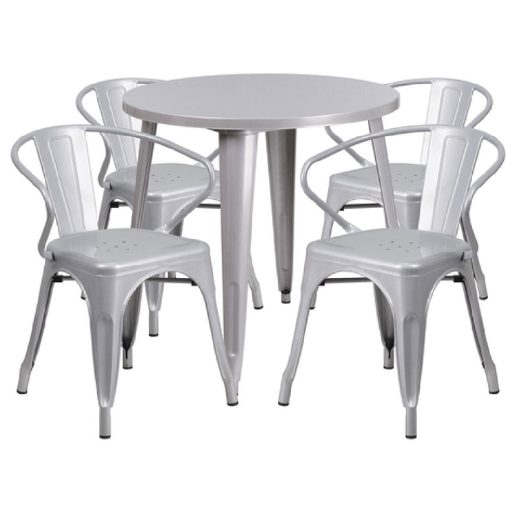 Flash Furniture CH-51090TH-4-18ARM-SIL-GG 30 Inch Diameter Round Table and Chair Set Silver Metal - 1/Set