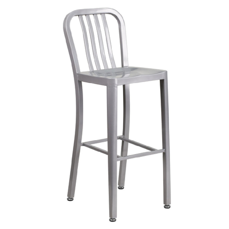 The Flash Furniture CH-61200-30-SIL-GG Bar Stool is a robust commercial-grade seating solution designed for demanding indoor and outdoor environments. Crafted from galvanized steel with a durable powder coat finish, this outdoor bar stool supports a high weight capacity of 500 pounds, making it ideal for high-traffic hospitality, restaurant, and bar settings. Its vertical slat back provides ergonomic support, while the armless design enhances maneuverability in tight spaces. With a height of 43 inches, width of 15.5 inches, and depth of 20 inches, this stool offers a balanced combination of stability and space efficiency, suitable for both casual dining and upscale bar areas. Its technical features cater to professional foodservice operations requiring long-lasting, maintenance-friendly outdoor seating with superior load capacity and corrosion resistance.