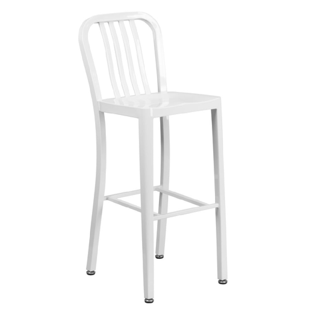 Flash Furniture CH-61200-30-WH-GG 15 Inch Bar Stool Vertical Slat Back Galvanized Steel White Powder Coat Finish