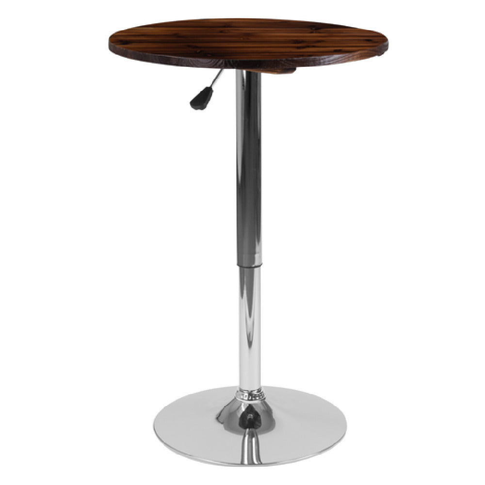 Flash Furniture, CH-9-GG, Table, 23-1/2" dia. x 26-1/4" - 35-1/2" adjustable height, round, 1" thick rustic walnut wood swivel top, pneumatic adjustment lever under top, 17-1/2" dia. chrome base, protective plastic floor ring, designed for commercial and residential use (in stock usually ships within 24 hours)