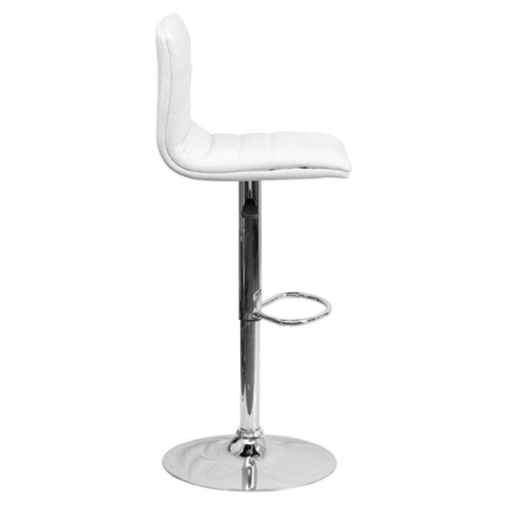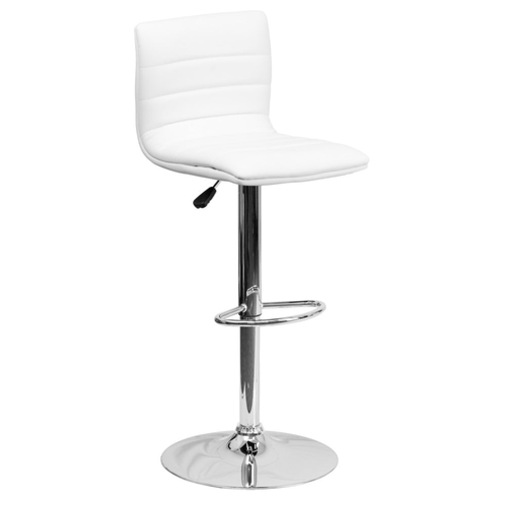 Flash Furniture, CH-92023-1-WH-GG, Swivel Bar Stool, adjustable height, contemporary style, mid-back design, upholstered horizontal line back & seat, gas lift, adjustable from counter to bar height, footrest, 17-5/8" dia. chrome base, CA117 fire retardant foam, designed for residential use, white vinyl (assembly required)