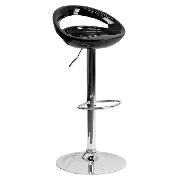 The Flash Furniture CH-TC3-1062-BK-GG Swivel Bar Stool is a commercial-grade indoor seating solution designed for versatile use in hospitality, restaurant, and bar environments. Featuring an adjustable height mechanism, it seamlessly transitions from counter to bar height, making it ideal for dynamic foodservice settings. Its contemporary style integrates a plastic rounded back with a contoured plastic seat, supported by a 17-5/8" diameter chrome base, ensuring durability and stability for frequent use.