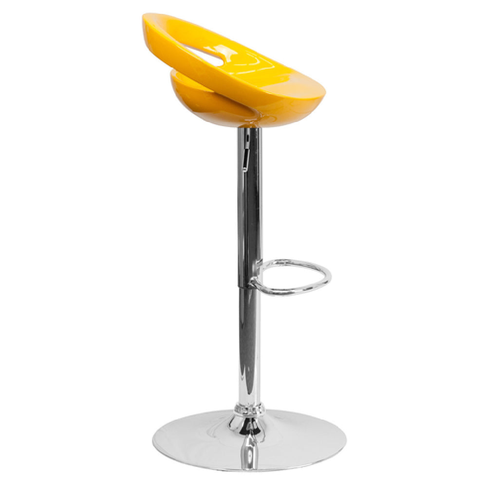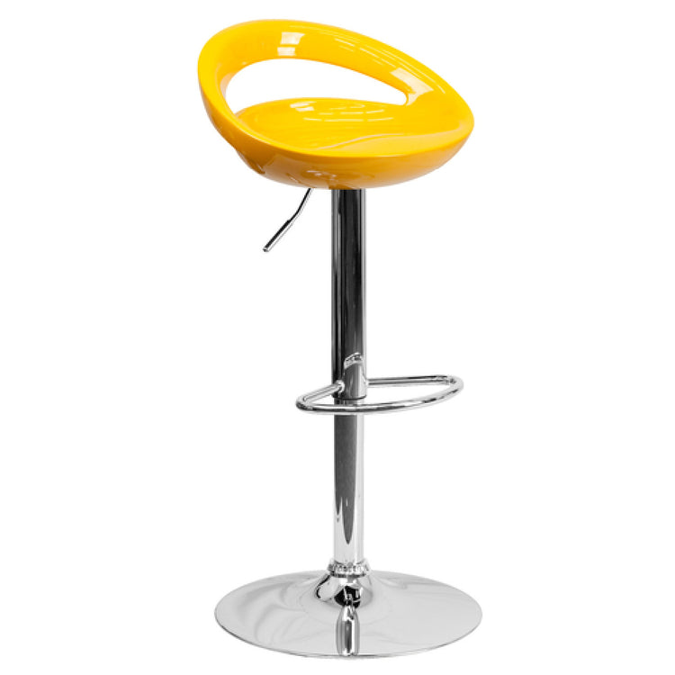 The Flash Furniture CH-TC3-1062-YEL-GG Swivel Bar Stool is an indoor seating solution designed for commercial environments requiring adjustable-height, contemporary-style bar seating. This model features a plastic rounded back and a contoured plastic seat, combined with a gas lift mechanism for effortless height adjustment from counter to bar heights. Its 17-5/8" diameter chrome base ensures stability and durability, making it suitable for high-traffic foodservice and hospitality settings. Engineered for residential and light commercial use, this stool provides a practical blend of ergonomic comfort and sleek design, facilitating versatile seating arrangements in cafes, bars, and casual dining spaces.