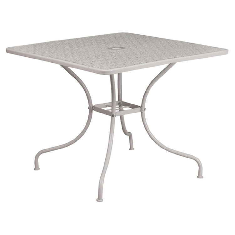 Flash Furniture CO-6-SIL-GG 35-1/2 Inch Square Patio Table Steel Light Gray with Umbrella Hole