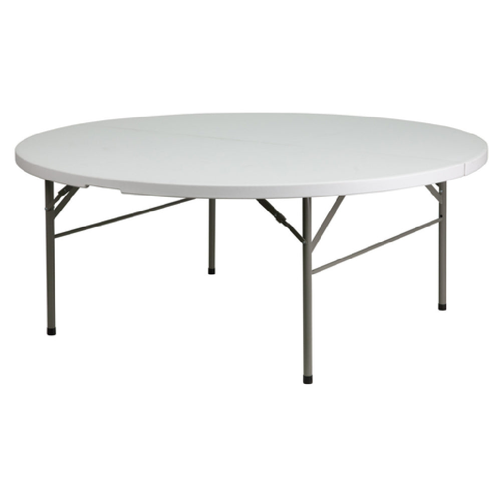 Flash Furniture, DAD-183RZ-GG, Folding Table, 71" dia. x 29"H, seats up to 8 adults, 771 lb. static load capacity, round, 2" thick granite white plastic table top, folds in half for storage and travel, carrying handle, gray powder coated metal locking legs, non-marring floor caps, waterproof, impact and stain resistant top, designed for indoor/outdoor use (in stock items usually ship within 24 hours)