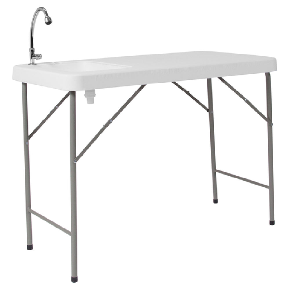 Flash Furniture, DAD-PYZ-116-GG, Folding Table, 23"W x 45"L x 34"H, 220 lb. static load capacity, rectangular, 2-1/2" thick granite white plastic top, 11-1/2"W x 16-1/4"L x 3"H sink, with faucet attachments and hose extension, includes drain stopper, gray powder coated locking legs, protective floor caps, designed for indoor/outdoor use (in stock items usually ship within 24 hours)