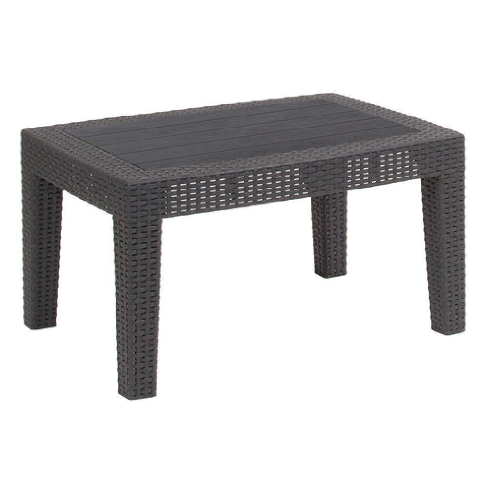 Constructed with weather-resistant faux rattan and resin, this outdoor coffee table offers a stylish, lightweight, and stable solution for outdoor hospitality settings. Its durable materials prevent weathering, and the compact design facilitates flexible arrangements, enhancing operational efficiency compared to bulkier, less weather-proof options. The plastic block feet ensure stability on uneven surfaces, and the approachable size supports various outdoor layout configurations for high-traffic venues.