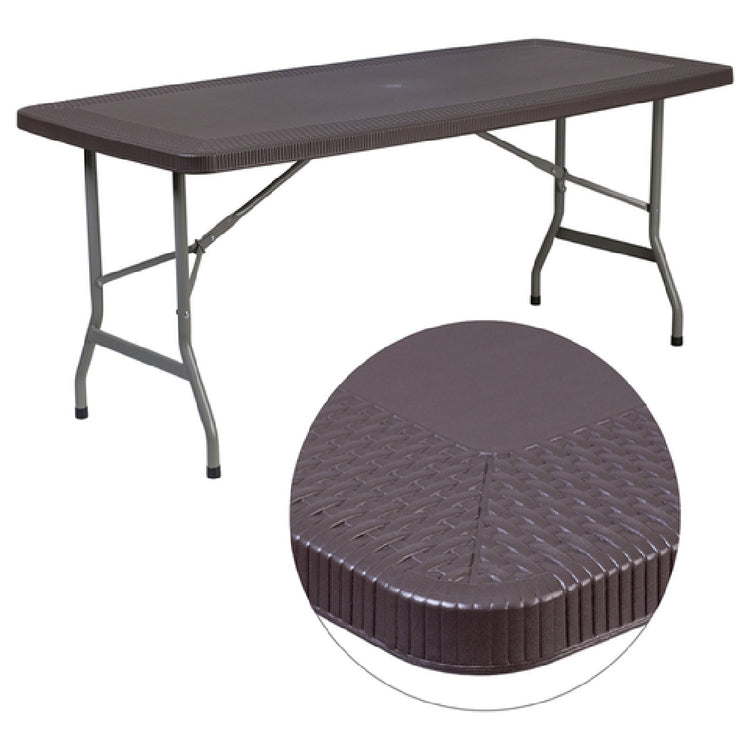 Flash Furniture DAD-YCZ-172-GG 67-1/2 Inch Folding Table Rattan Edge Boarder