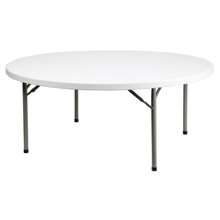 Flash Furniture, DAD-YCZ-180R-GW-GG, Folding Table, 71" dia. x 29"H, seats up to 10 adults, 1100 lb. static load capacity, round, 2-1/8" thick granite white plastic table top, gray powder coated metal locking legs, protective floor caps, waterproof, impact and stain resistant top, designed for indoor/outdoor use (in stock items usually ship within 24 hours)