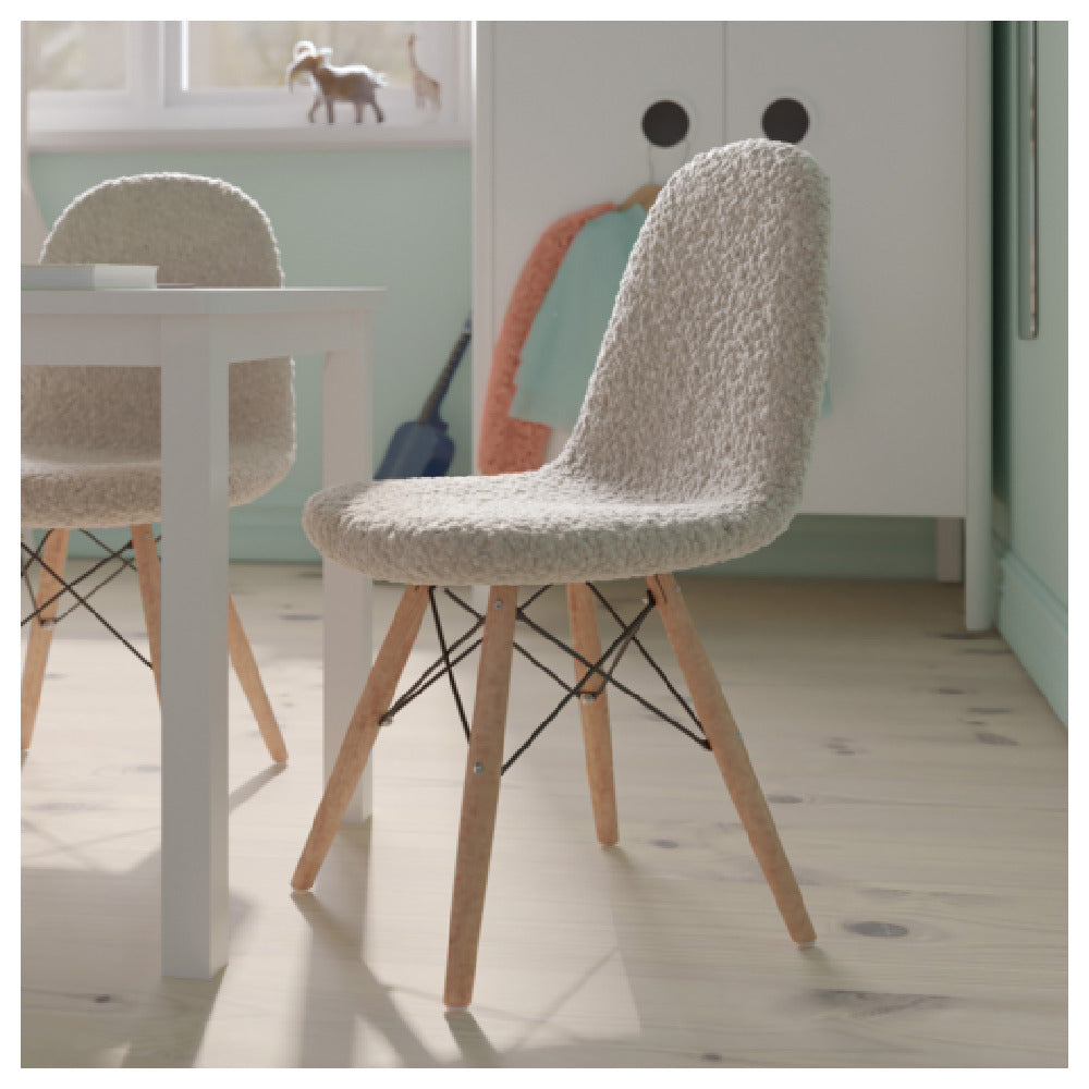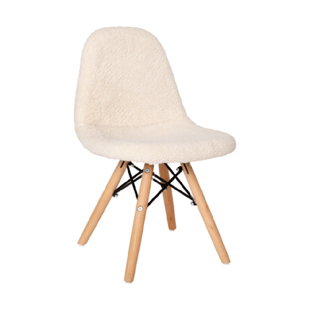 This Zula Kid's Accent Side Chair is optimized for commercial foodservice, featuring a foam-padded seat and back for comfort, a sturdy steel underframe for long-term durability, and solid beechwood legs ensuring stable support. Its ergonomic curved mid-back enhances posture, while the faux shearling upholstery simplifies maintenance in busy environments. Ideal for classrooms, café seating, or snack stations, this chair provides reliable performance with a focus on ease of cleaning and resilient construction.