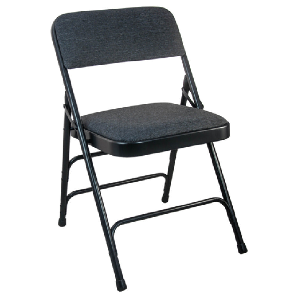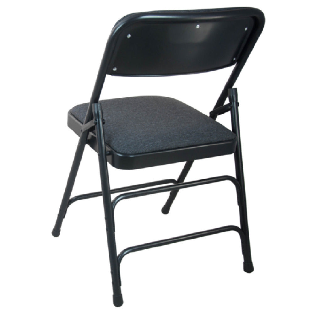 The DPI903F-BLKBLK Advantage Folding Chair is manufactured with an 18-gauge steel frame finished in black, supporting a weight capacity of 300 lb. Its overall dimensions measure 18.5 inches wide, 20 inches deep, and 30 inches high, with a seat height optimized for standard tables. The fabric upholstered seat and back contain CA117 fire-retardant foam, ensuring safety in commercial environments. The chair weighs 12 pounds and features non-marring glides for surface protection. Its construction standards promote durability for moderate workloads typical in restaurants and event spaces. This model does not incorporate electrical or refrigeration components, focusing solely on structural resilience and ease of use. The cleanable fabric surfaces and minimal assembly facilitate quick maintenance and versatile storage, fitting seamlessly into high-volume seating workflows.
