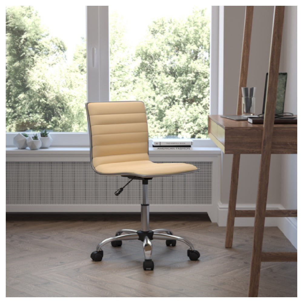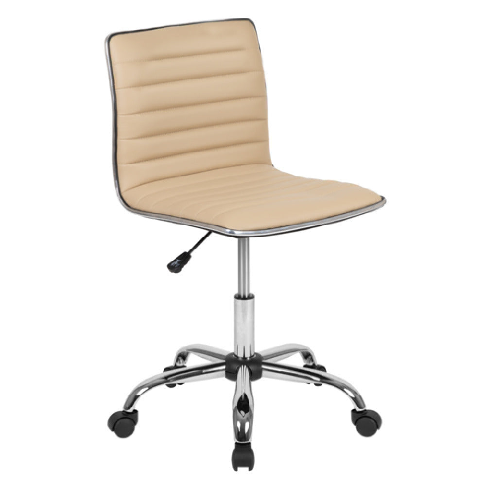The Flash Furniture DS-512B-TAN-GG Alan Swivel Task Chair is a professional-grade seating solution designed for ergonomic comfort and durable performance in commercial workspace environments. This swivel chair features an adjustable height range of 31-1/4" to 36", facilitating versatile positioning for users of varying heights. Constructed with ribbed vinyl upholstery and foam-molded seat and back, it offers a resilient surface suited to high-use applications. Its chrome base with dual wheel casters ensures stability and smooth mobility, supporting a maximum weight capacity of 250 lb. Ideal for task-oriented workstations, administrative offices, and conference rooms, this model addresses ergonomic needs with precision technical specifications that enhance workflow efficiency and operator comfort.