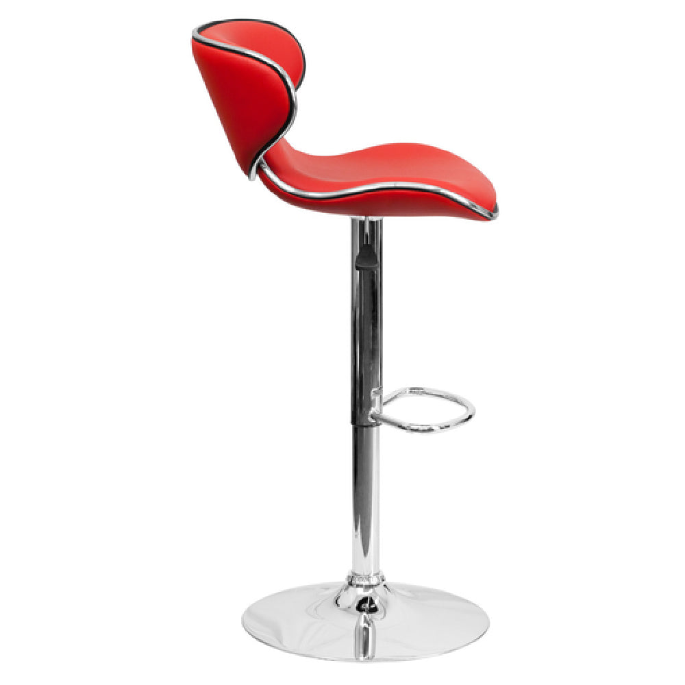 The Flash Furniture DS-815-RED-GG Swivel Bar Stool is a versatile indoor seating solution designed for commercial hospitality environments. This adjustable-height, contemporary-style bar stool features a sturdy pedestal base with a 17-5/8" diameter chrome finish and is upholstered with red vinyl for durability and aesthetic appeal. Equipped with a gas lift mechanism, it allows seamless transition from counter to bar height, ensuring ergonomic comfort. Its mid-back design with upholstered deep curved back and seat provides extended seating support, making it suitable for high-traffic restaurants, bars, and cafes. The stool’s technical construction emphasizes stability and easy maintenance, ideal for dynamic foodservice applications requiring space-efficient seating with quick adjustability.