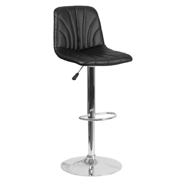 Flash Furniture, DS-8220-BK-GG, Swivel Bar Stool, adjustable height, contemporary style, mid-back design, upholstered back and seat with stylish line stitching, gas lift, adjustable from counter to bar height, footrest, 17-5/8" dia. chrome base, CA117 fire retardant foam, designed for residential use, black vinyl (assembly required) (in stock items usually ship within 24 hours)