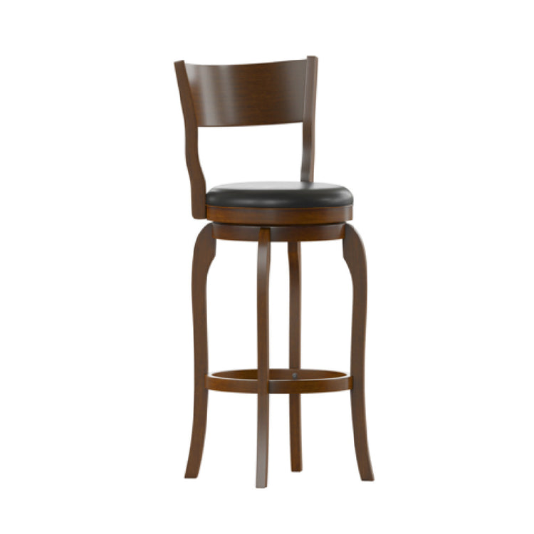 Flash Furniture ES-NT2-29-OAK-GG 18 Inch Nichola Swivel Bar Stool Open Back LeatherSoft Antique Oak Black