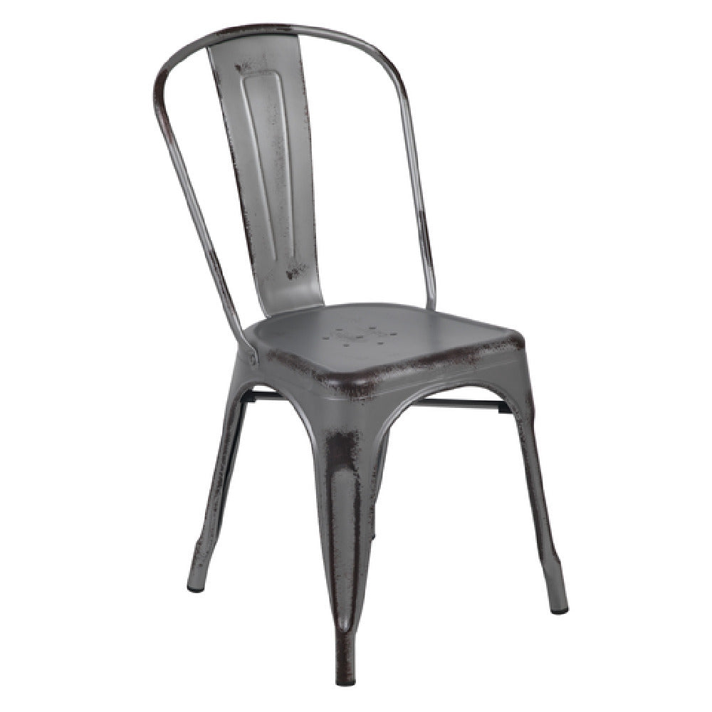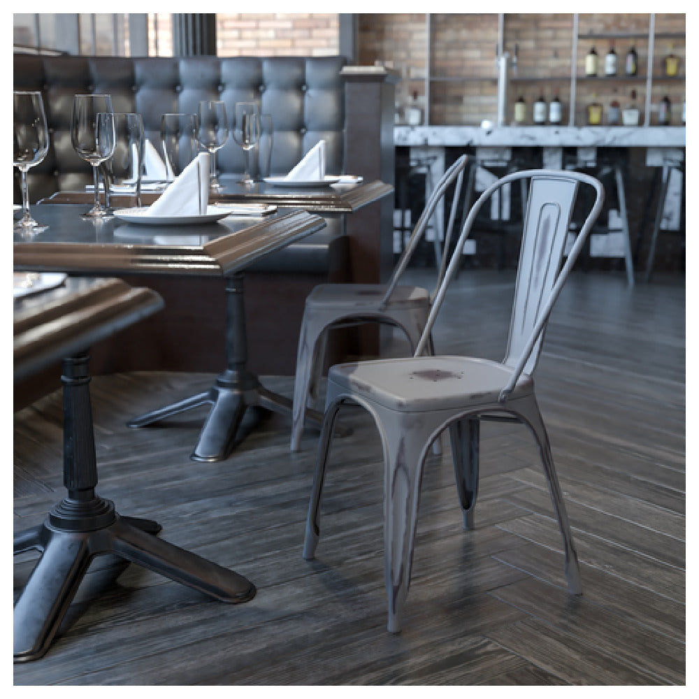 Flash Furniture ET-3534-SIL-GG 17 Inch Metal Stackable Chair 500 Lb Capacity Distressed Finish