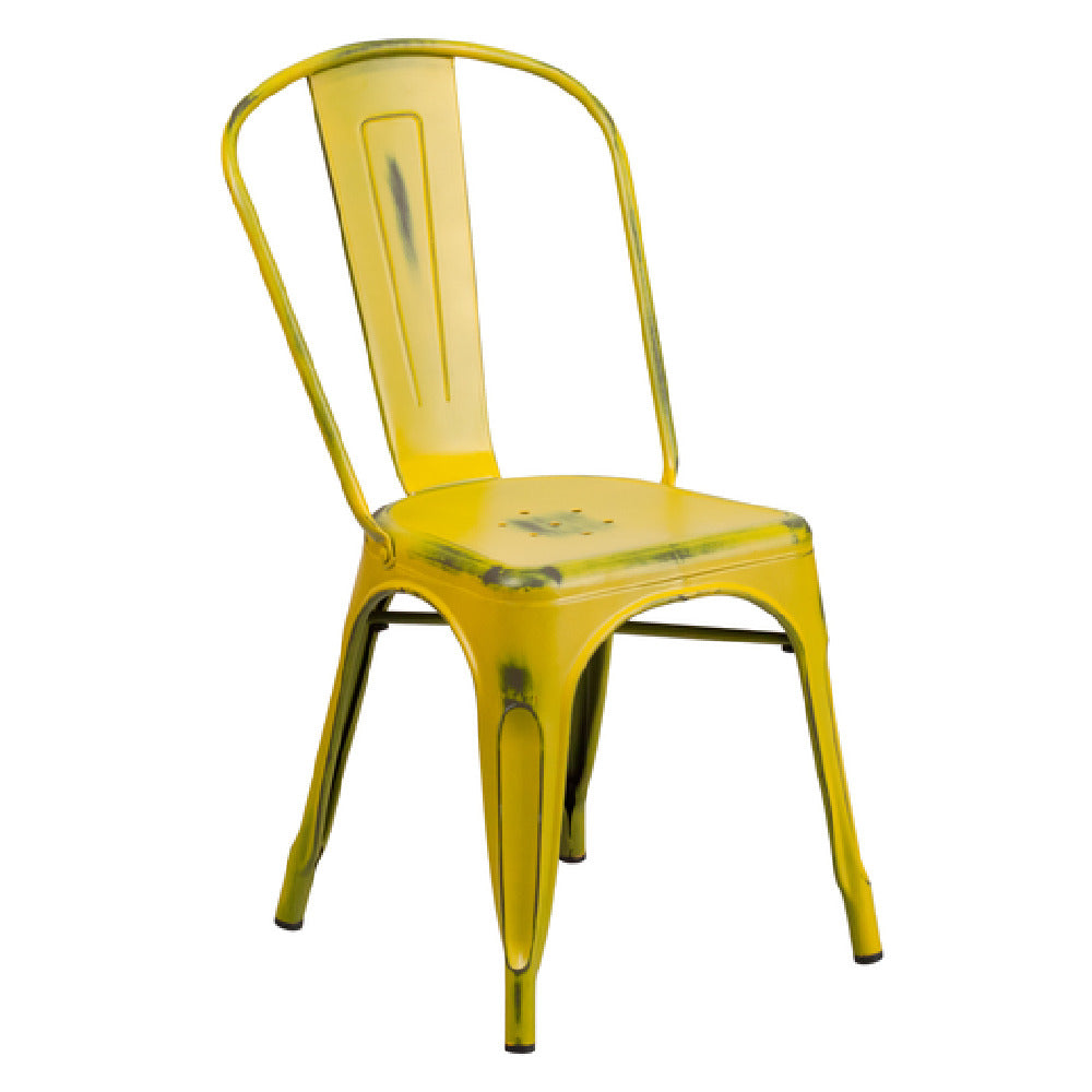 Flash Furniture ET-3534-YL-GG 18 Inch Stackable Chair Distressed Metal Yellow