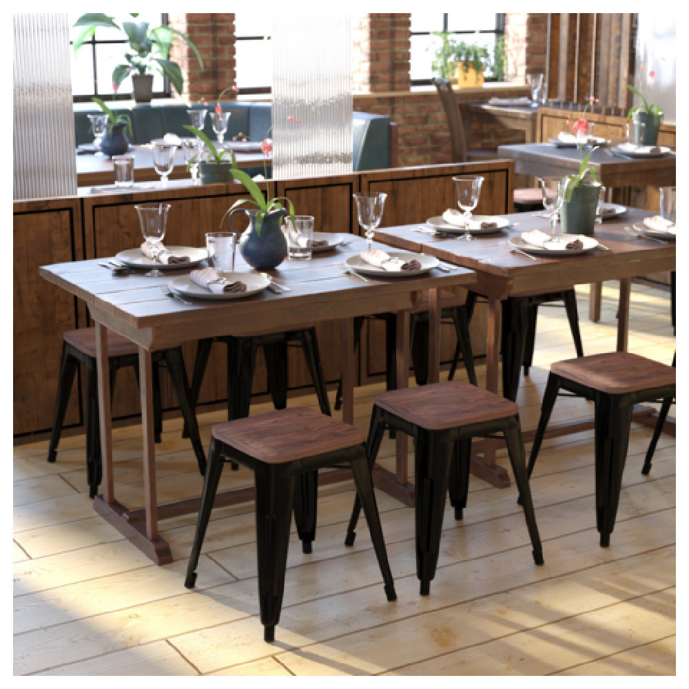 The Kai Stool features a robust 18-inch height designed for versatile seating in commercial environments. Its square wooden seat measures 15.75 inches in both width and depth, supported by a welded metal frame that provides a 250-pound weight capacity. Construction includes a durable powder-coated black finish resistant to daily wear, with plastic floor glides to protect flooring and facilitate movement. The assembly requires minimal effort, with each set of four stools delivered ready for straightforward setup. This model supports continuous moderate-use, ideal for hospitality, lounge, or casual dining premises where efficient stacking and easy maintenance are priorities.