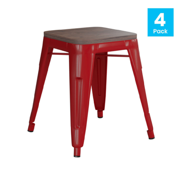 The Flash Furniture ET-BT3503-18-RED-WD-GG Kai Stool 18"H 250lb Weight Capacity is a commercial-grade indoor stacking bar stool designed for high-traffic environments such as restaurants, cafes, and hospitality spaces. This backless square wooden seat features welded metal construction for durability and reliable performance under demanding workloads. With an 18-inch height and a 250-pound weight capacity, it is optimized for versatile seating arrangements requiring stability and ease of maintenance in busy foodservice settings.