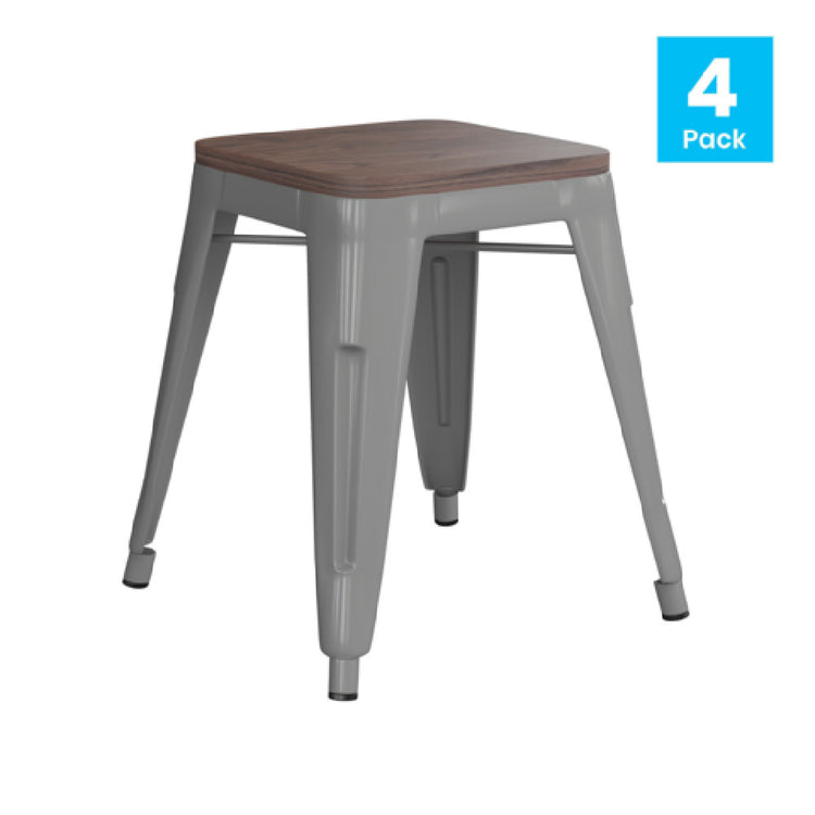 Flash Furniture ET-BT3503-18-SIL-WD-GG 15.75 Inch Square Bar Stool Set of 4 - 1/Set