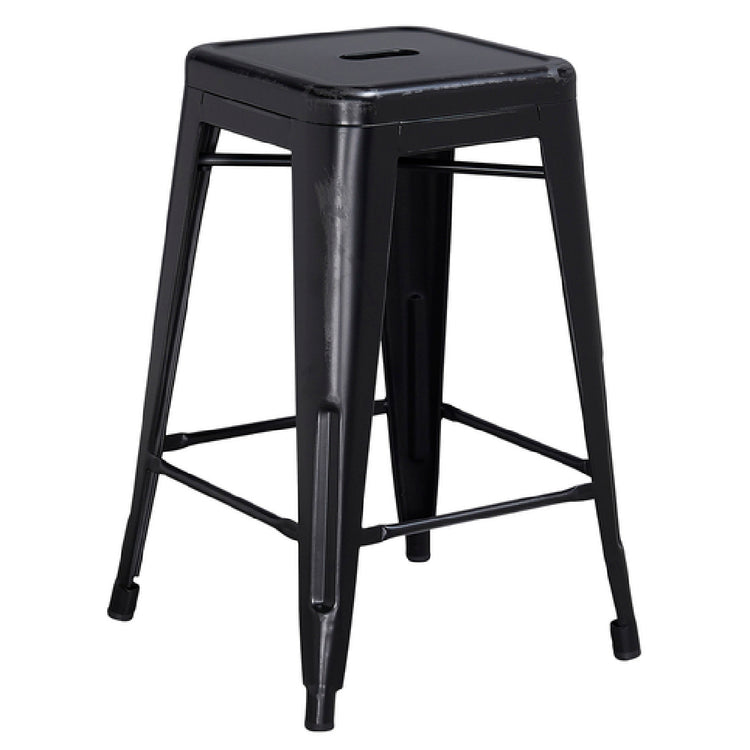 Flash Furniture, ET-BT3503-24-BK-GG, Bar Stool, 500 lb. weight capacity, counter height, backless, drain hole in seat, cross brace under seat, galvanized steel, distressed powder coat finish, footrest, plastic floor glides, lightweight, designed for indoor/outdoor commercial and residential use, stacks up to 10 chairs high, black (in stock items usually ship within 24 hours)